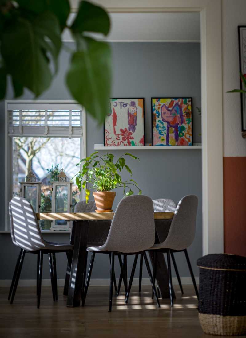 Eine weitere Möglichkeit, um ohne zu bohren mit Bildern das Raumdesign aufzupeppen, ist das Aufstellen der Kunstwerke. Insbesondere größere Exemplare eignen sich hervorragend dazu, sie lässig an die Wand zu lehnen. Das wirkt cool und ungezwungen.