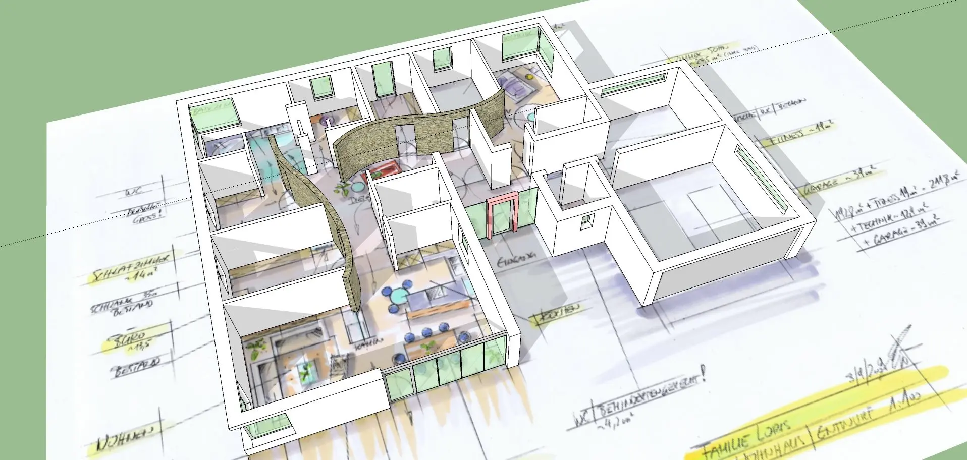 Speziell bei Neubauten soll man sich vorher überlegen, was man eigentlich alles will. Wie will ich leben, wohnen und arbeiten oder wie soll in der Firma gearbeitet werden? Welcher Platz- und Funktionsbedarf ist notwendig und welche Abwicklungssymmetrie soll sich ergeben? Aus energetischer Sicht tauchen beispielsweise Fragen über den Verlauf von Wasseradern oder Erdstrahlen auf. Oder ist mir zum Beispiel wichtig mit der Sonne aufzustehen oder auf der Terrasse lange Sonnenstrahlen genießen zu können? All das beeinflusst die Größe und Ausrichtung des Gebäudes. Unserer Meinung nach ist es sehr sinnvoll, vorher über solche Dinge nachzudenken und danach erst mit der Außenarchitektur zu beginnen.