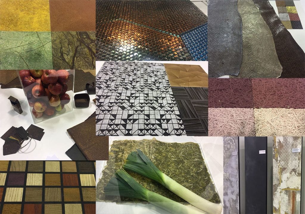 Besonders aufgefallen ist der Fokus auf Nachhaltigkeit. Viele Aussteller setzen in ihren neuen Entwicklungen auf die Verwendung von recycelbaren und organischen Grundstoffen. Doch nicht nur das, besonders spannend fanden wir neueste Materialien aus recycelten Abfallprodukten. So erfuhren wir wie angenehm weich Leder aus recycelten Apfelabfällen sein kann und welch interessante Optik eine Papieroberfläche aus Lauchabfällen hervorbringt. Doch bei 2D hört es heutzutage nicht mehr auf. Viele dreidimensionale Gestaltungen von Dekoren und Stoffen konnten uns begeistern und werden in Zukunft bestimmt viele optisch spannende Lösungen hervorbringen.