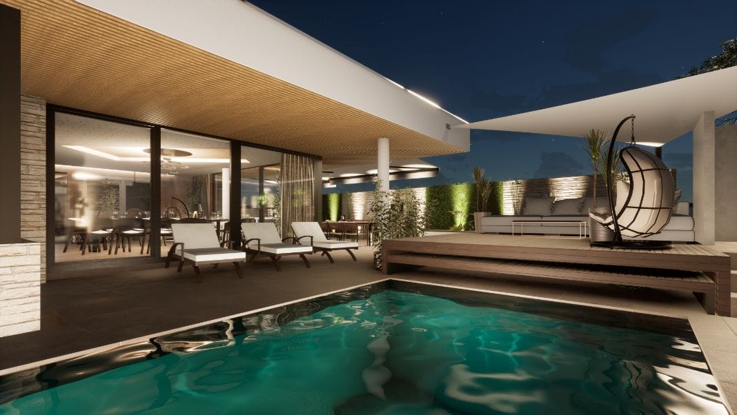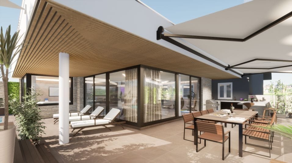 Eine Sauna, ein Whirlpool oder sogar ein Swimmingpool erweitert bei diesem neuen Programm das Wellness-Feeling. Die herrlichen Garten- und Lichtgestaltungen und die vollautomatischen Überdachungen oder Sonnensegel, sind Teil eines behaglichen Raumgefühls.