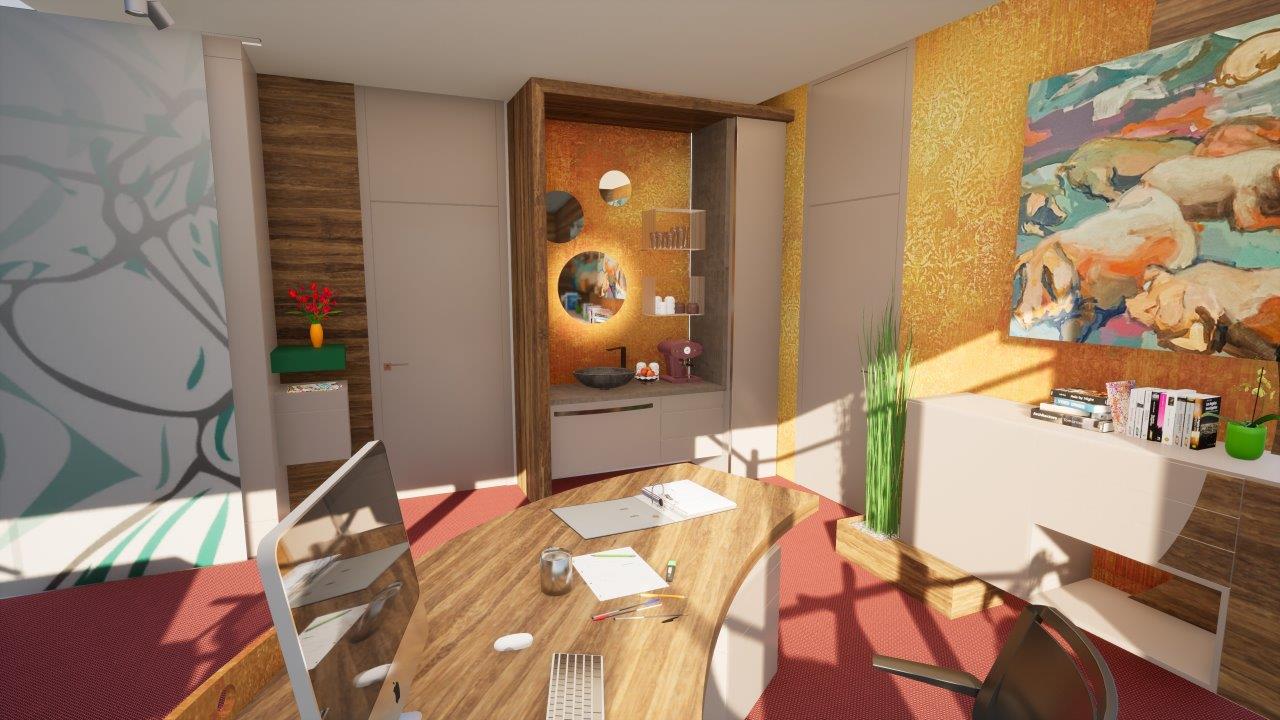 Wir richten Firmen so ein, dass sie authentisch sind und das widerspiegeln, was sie repräsentieren. Dies reflektiert sich in der Einrichtung, in Stil und Farben und betont den persönlichen Charakter des „Bewohners“, was sich vor allem in Chefbüros sehr gut umsetzen lässt.
