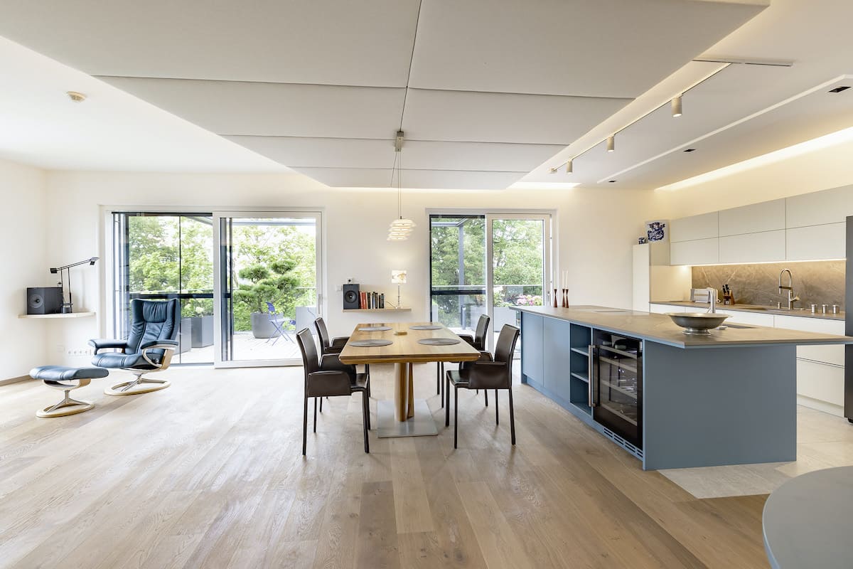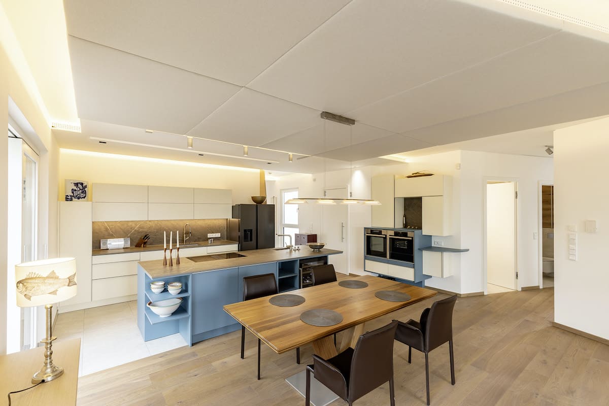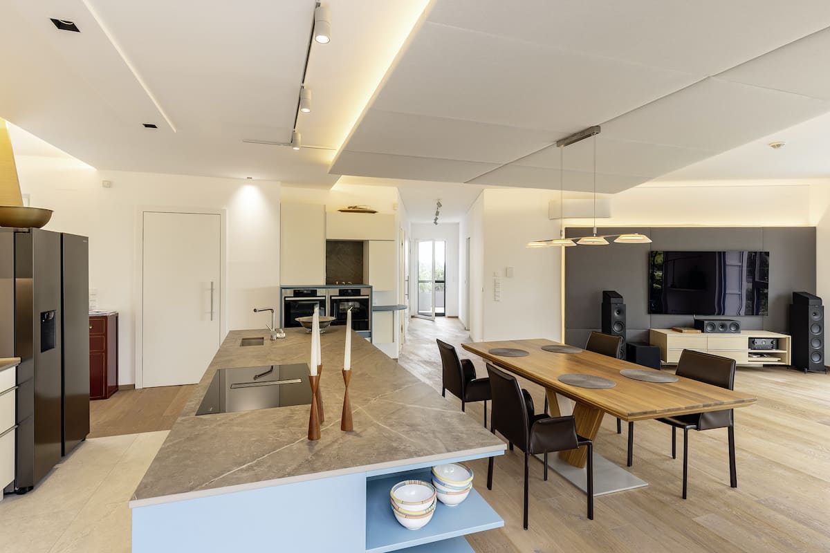 „Das ganze Konzept ist sehr stimmig. In der Küche befindet sich eine sehr schöne, große Kücheninsel, die gesamte Fläche wirkt geräumig, man kann sich gut bewegen. Alles ist funktionell, elegant und wirklich sehr ansprechend geworden. Das gesamte Ambiente gefällt mir wirklich sehr gut.“