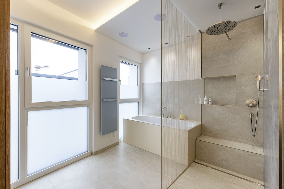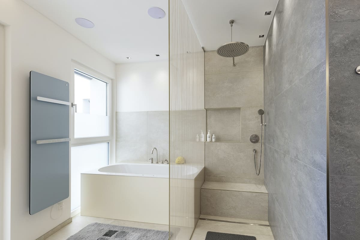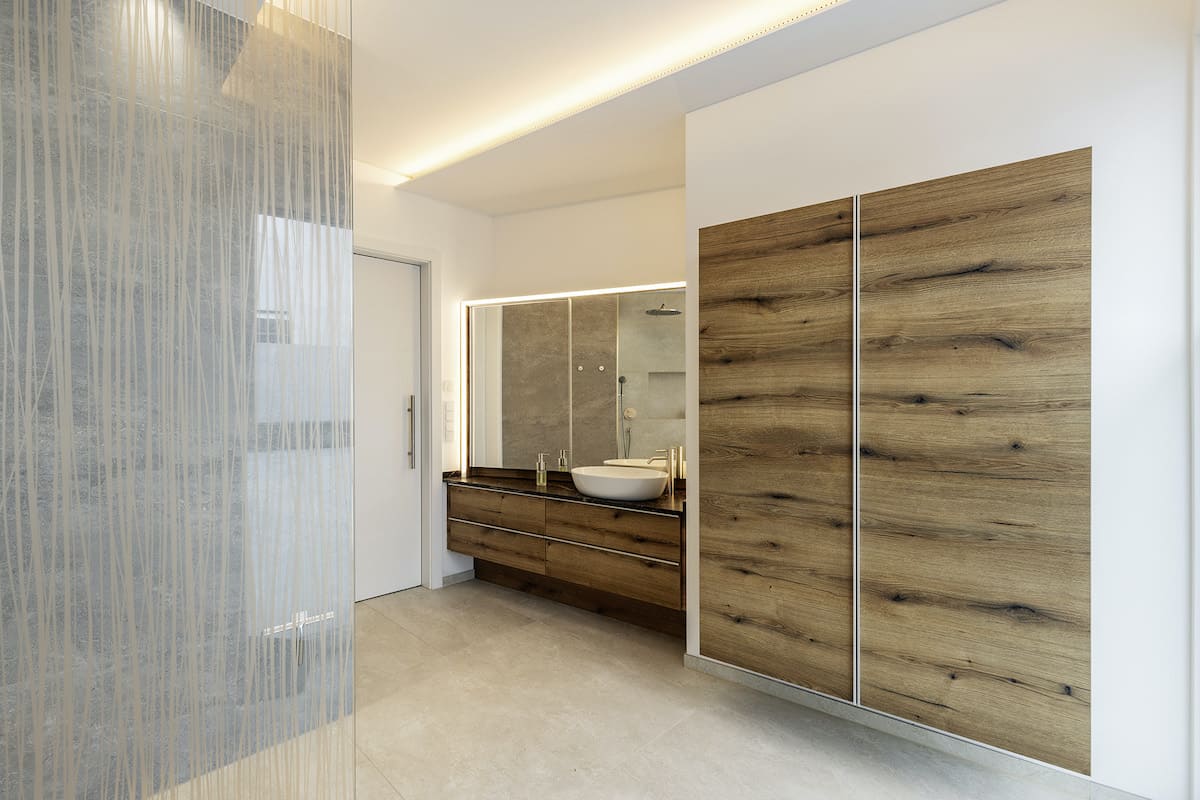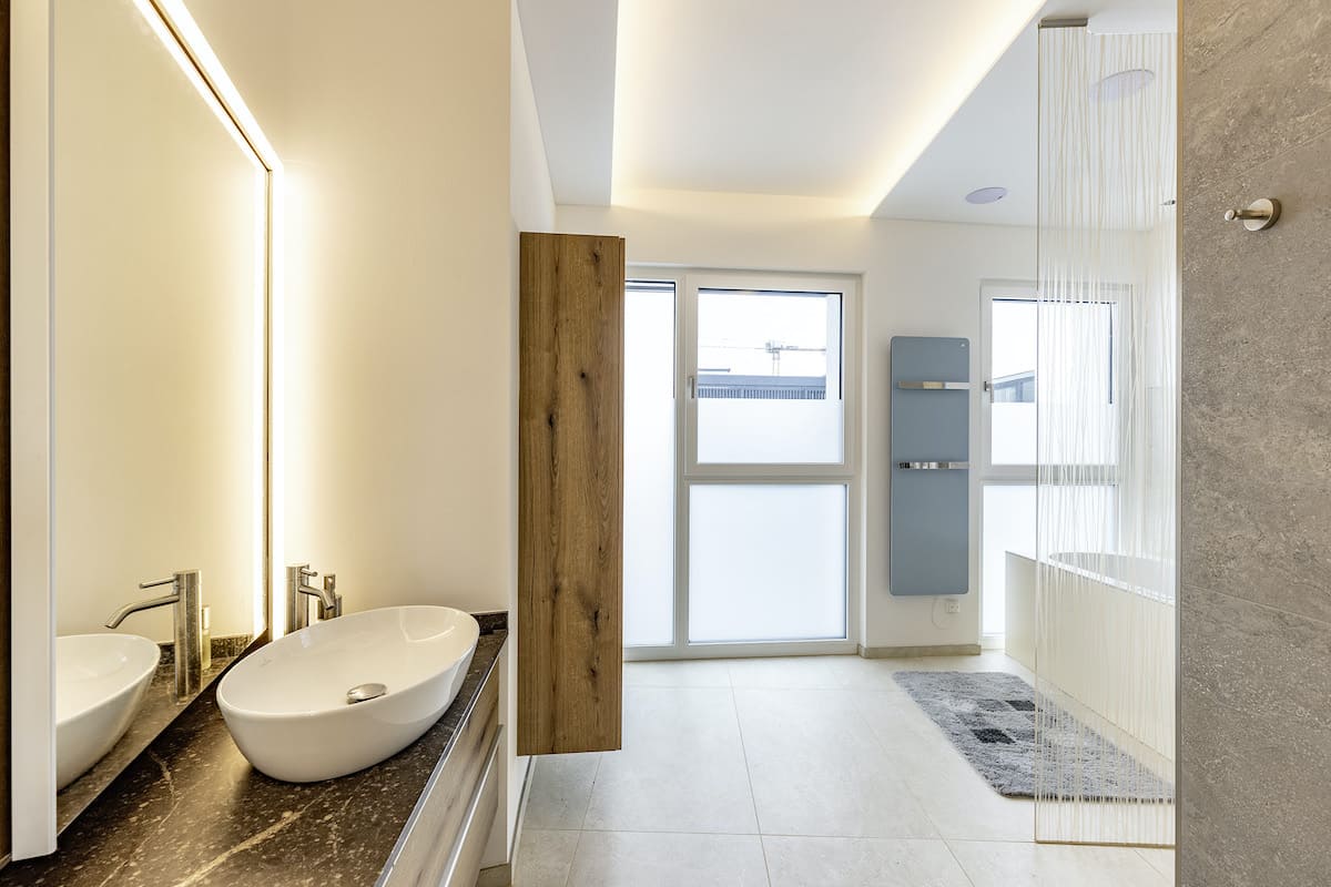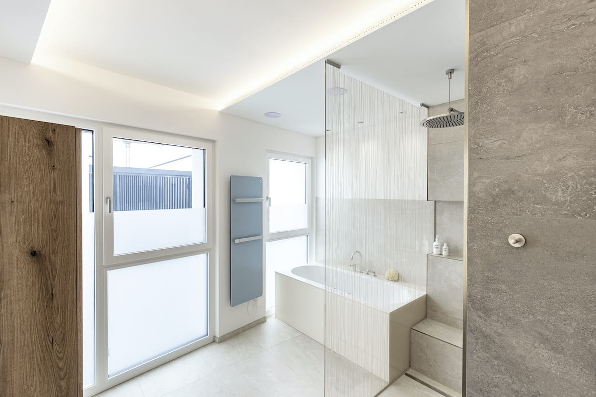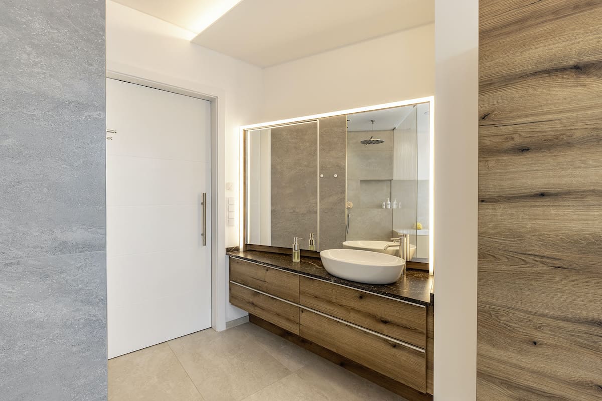 Auch bei der Farb- und Materialwahl im Badezimmer hat man das Gesamtkonzept konsequent weitergeführt. Unser Bad ist jetzt ein Raum, in dem man sich entspannen kann und einfach nur wohlfühlt.“