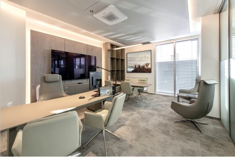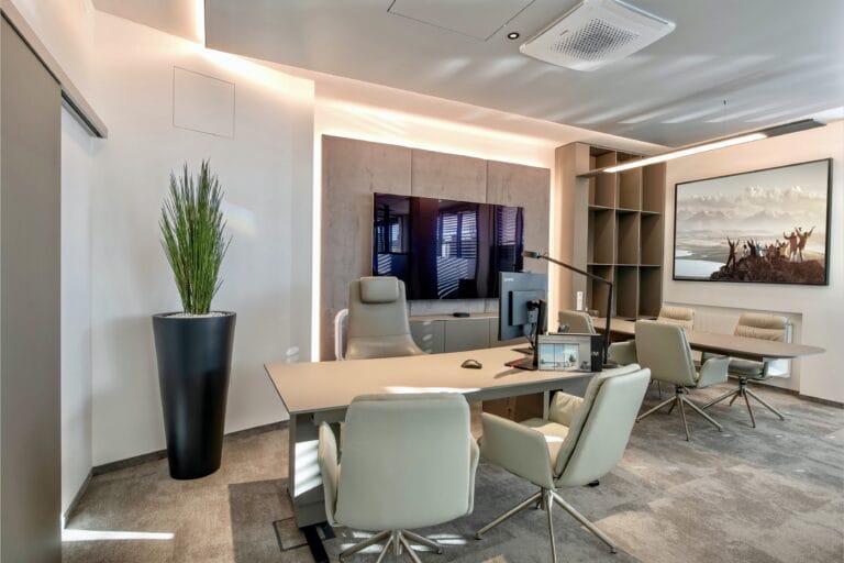 Nach den Schauräumen und Meetingräumen waren nun die 3-stöckigen Büros im Hauptgebäude Wien komplett neugestaltet. Der Geschäftsführer von ALUKÖNIGSTAHL berichtet persönlich. War er zufrieden mit dem Umbau? 20 Jahre gab es nur kosmetische Veränderungen. Jetzt wurde alles neu gestaltet durch das Innenarchitektur-Team Horst Steiner. Wurde es so wie geplant? Hielt man sich an die Vorgaben? Wie fanden es die Mitarbeiter? Geänderte Grundrisse, Glaswände statt Mauern, auf die Mitarbeiter zugeschnittene Lösungen, individuelle Möbeln, Akustiklösungen, exzellente Beleuchtung und ein Design bei dem alles zusammenpasst. Besucher die das Büro vorher kannten, waren über die Veränderungen total verblüfft.