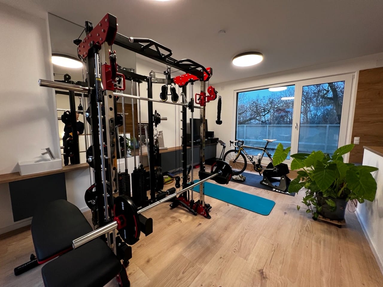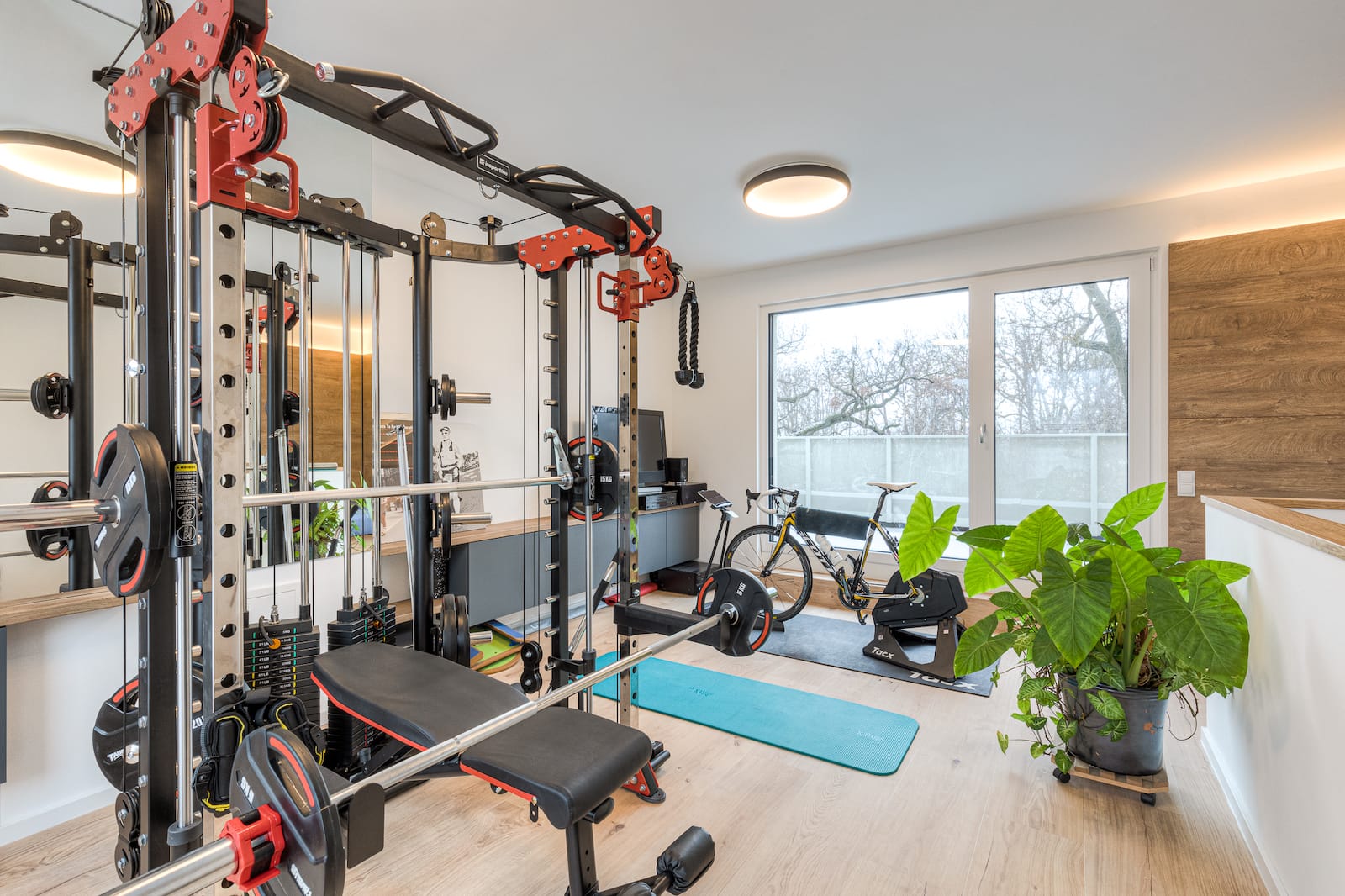 Als begeisterter Sportler und Triathlet hat sich unser Kunde einen Wunsch erfüllt, um den ihn jetzt wahrscheinlich andere Sportenthusiasten beneiden werden: sein eigenes Reich, mit toller Aussicht ins Grüne und nur seiner Fitness gewidmet. Wie das dann aussieht, sehen Sie hier, und es fängt schon im Treppenhaus an!