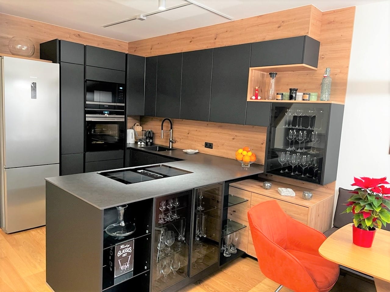 Obwohl wir mit unserer Planung rechtzeitig in der Bauphase dieses Neubaus eingestiegen sind, wurden die vom Kunden gewünschten Änderungen vom Bauträger nicht unterstützt. Letztendlich mussten wir also alle Umbauten, wie das Versetzen, Neupositionieren oder Weglassen von Wänden und ein Umverlegen aller Installationen selber bis ins Detail planen und für den Bauträger aufbereiten. Unser Ziel war es, ein schöneres Raumgefühl zu schaffen, das für den Kunden wirklich passt.