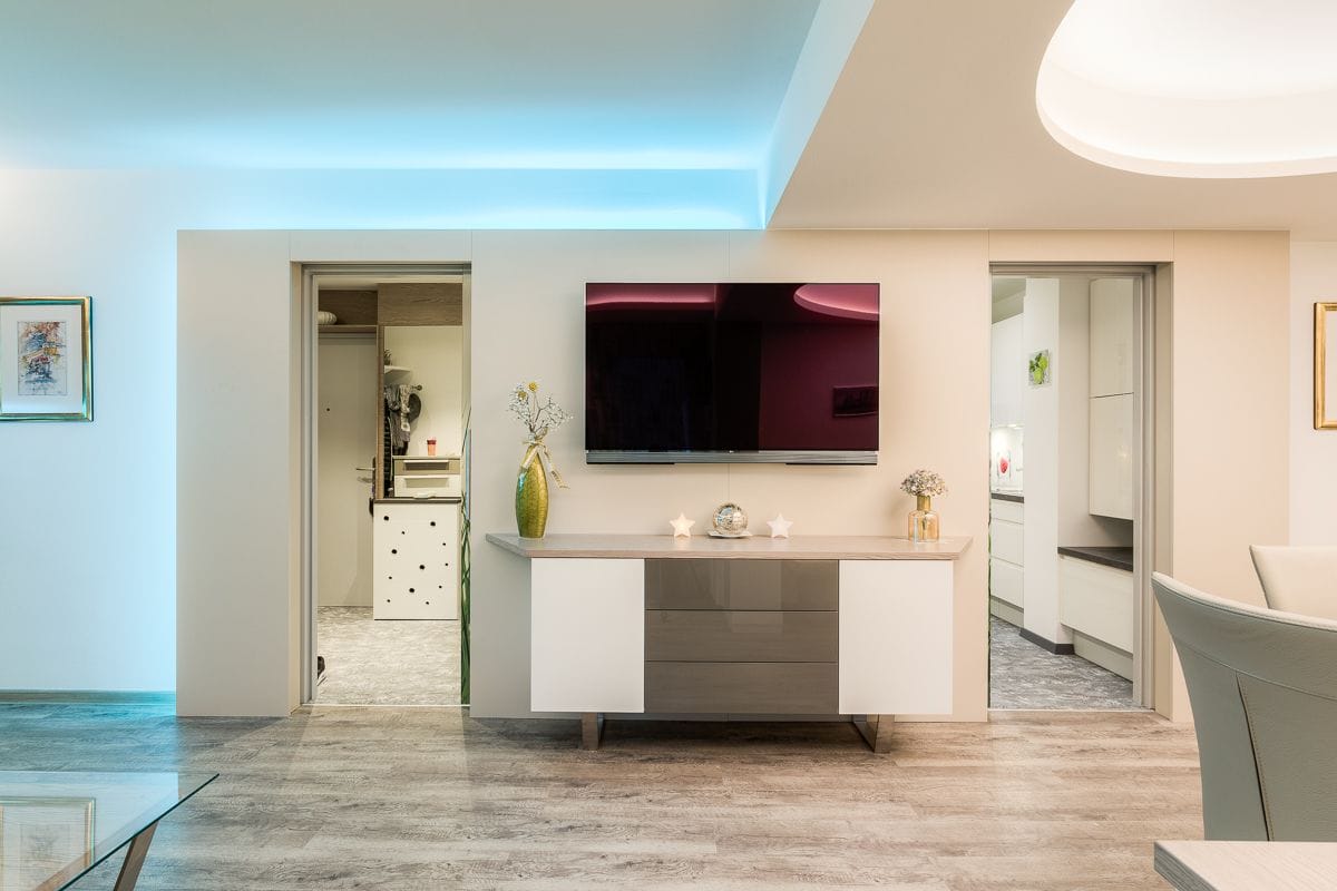Hat man nun den Boden bestimmt, würde ich zu weiteren langlebigen Gegenständen übergehen, wie Türen und Funktionsmöbel. Diese stimmt man dann einfach auf den Boden ab. Auch hier gilt, entweder eher neutral gehalten oder etwas, das auch in zehn Jahren noch gefallen wird.